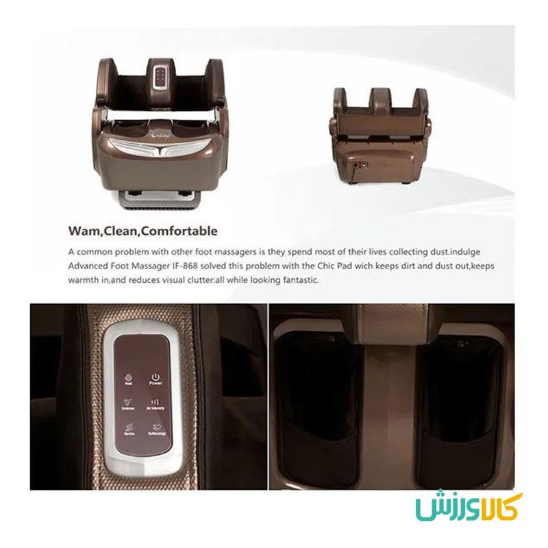 ویژگی های محصول مناسب برای بانوان و آقایان دارای ماساژ غلتکی و گرمایشی و کیسه هوا دارای فناوری اسکن امکان چرخش قسمت بالا برای پوشش دادن ران و زانو 7 حالت ماساژ برای کف پا، ماهیچه ساق، ران و زانو