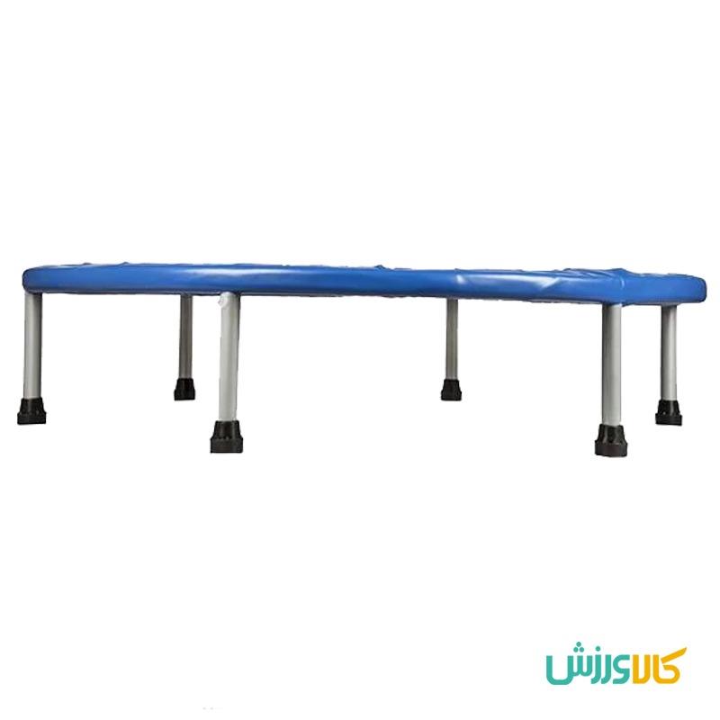 این محصول دارای 6 پایه نگهدارنده فلزی میباشد که با فواصل مناسبی از هم قرار دارند. جهت پرش روی این ترامپولین فنرهایی با قطر 3 میلیمتر استفاده شده که آن را عنوان بهترین محصول برای کالری سوزی و ورزشهای جامپینگ تبدیل کرده است.